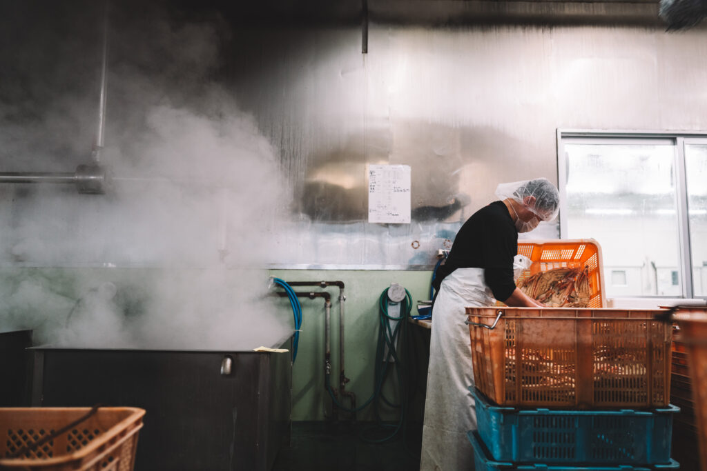 ✔ 競り場から1分の本店で、その日のうちに鮮度抜群のカニを加工(浜茹で)