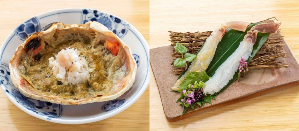 冬季限定で、中村商店直送の松葉がにを使った特別コースをご提供しています。